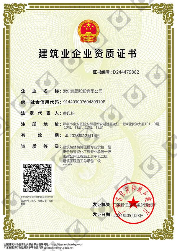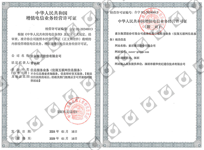 索尔集团股份有限公司自成立以来拥有行业多项专业资质、其旗下针对不同行业拥有多个自主品牌,索尔专业从事综合布线产品、特种定制线缆和电线电缆产品研发、设计、制造、销售、品牌运营、弱电施工及智能化信息系统集成于一体的高新技术国家级小巨人企业。