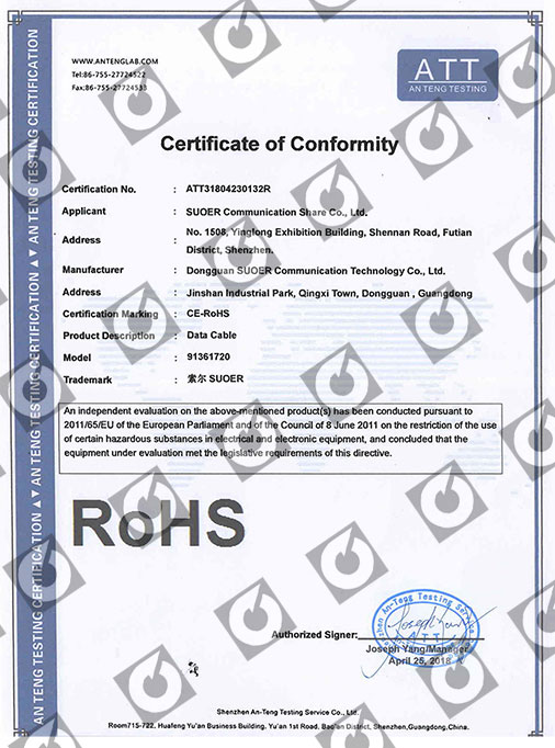 索尔RoHS证书