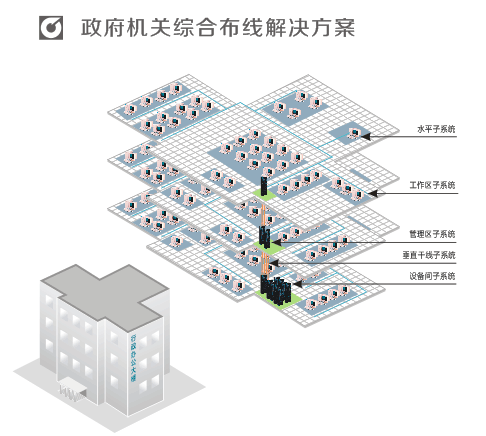 政府机关综合布线特点: 开放性:符合多种国际上现行的标准,并支持所有通信协议。 可靠性:高标准的信息传输通道,以保证其电气性能。 先进性:所有布线均应采用世界上最新通信标准,并提供足够的余量。 可维护性:系统设计应科学合理,做到维护简单、方便